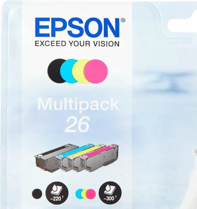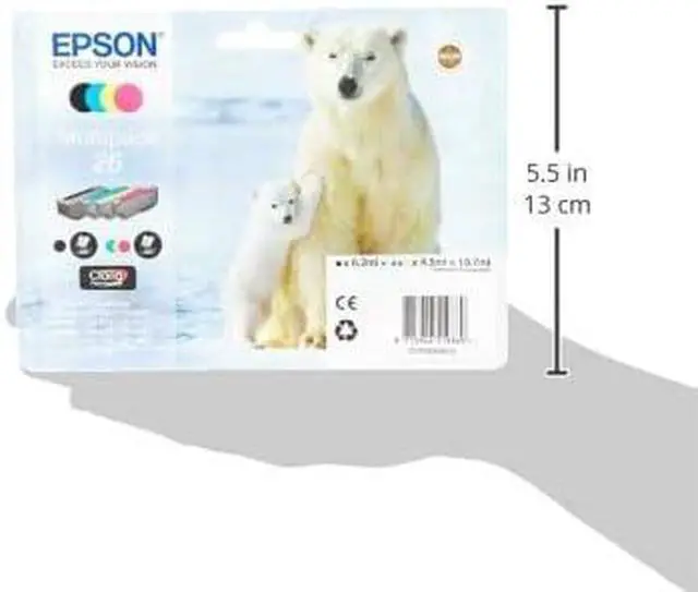 Using a combination of pigment black and dye color inks, Epson 26 ink produces crisp, clear text documents that meet the demands of any modern home. Also known as the Polar Bear range, this original Epson pack will provide users with glossy photos and documents that will show clear, sharp text.