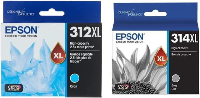 Epson T312XL220 Claria Photo HD Cyan High Capacity Cartridge Ink & Claria Photo HD Ink - Gray (T314XL Gray)