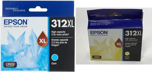 Epson T312XL220 Claria Photo HD Cyan High Capacity Cartridge Ink & T312XL420 Claria Photo HD Yellow High Capacity Cartridge Ink