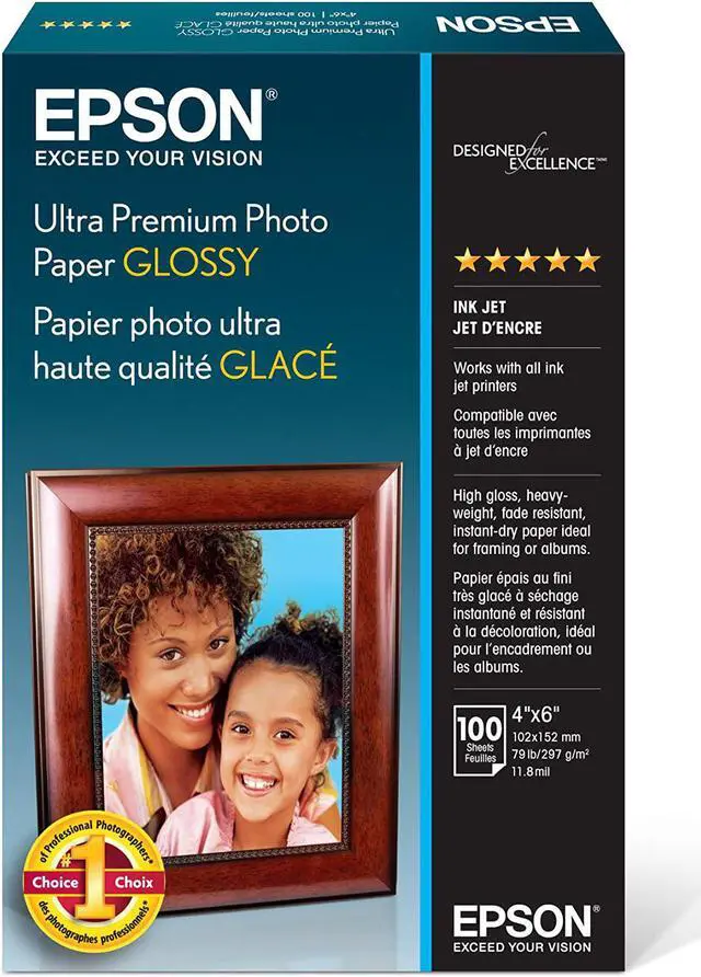 Epson S042174 Ultra premium Photo Paper Glossy, 4x6, 100 Sheets Ink
