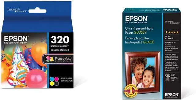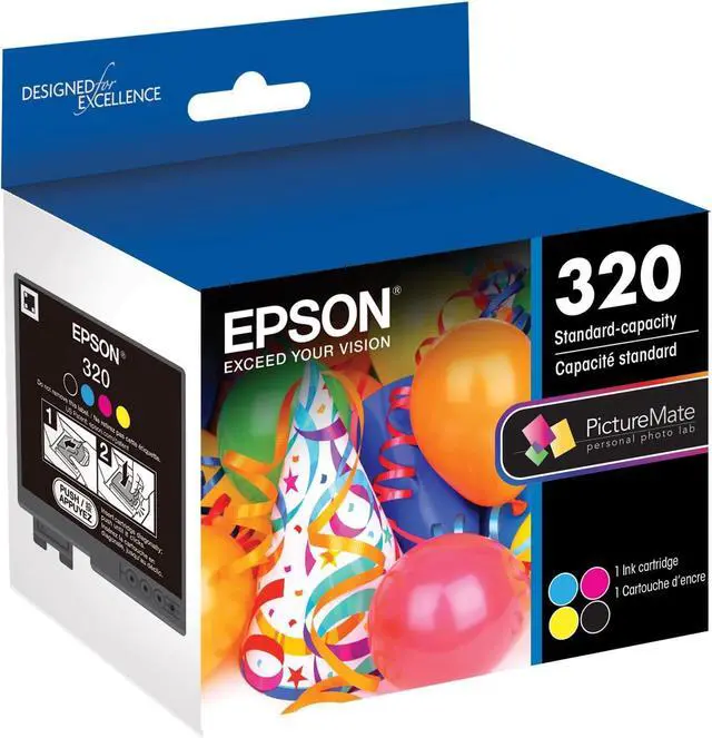 Epson T320 Picture Mate color cartridge ink. Long-lasting, affordable, brilliant, Pro quality photos that are smudge, scratch, water and fade resistant for worry-free handling for the Epson Picture Mate 400 series photo printer. Works with the Epson P400 printer. Color ink cartridge.