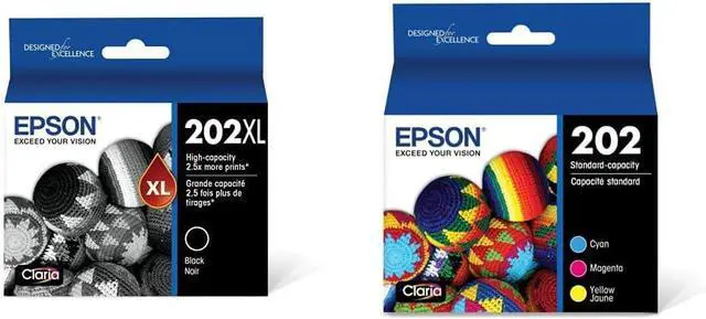 With three individual dye-color ink cartridges (Cyan, Magenta, Yellow) and one pigment Black ink cartridge, this Claria Ink set delivers vibrant color and sharp text for long-lasting, high-quality results.