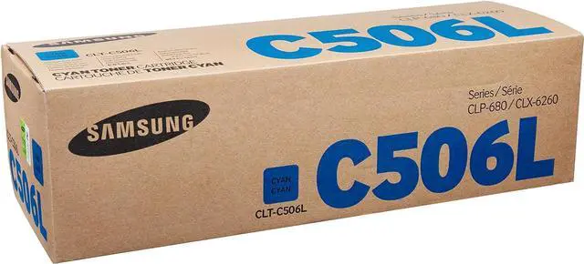 Samsung CLT-C506L (SU042A) High Yield Cyan Original Toner Cartridge. Compatible with the following Samsung printers: Samsung CLP-680DW, CLP-680ND, CLX-6260FD, CLX-6260FW. SU042A cartridge(s) average yield: 3500 pages. Colour: cyan. Shop Samsung Toner Cartridges at great prices to offer unprecedented print innovations and performance for your business.