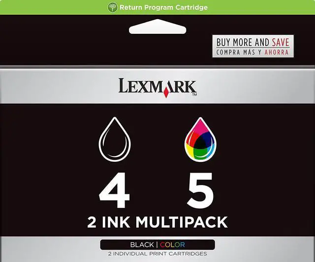Shipping Height: 1.9 Shipping Width: 4.1 Master Pack Qty: 24 General Information Manufacturer: Lexmark International, Inc Manufacturer Part Number: 18C2255 Brand Name: Lexmark Product Name: No. 4/5 Twin-Pack Ink Cartrdges Packaged Quantity: 2 / Pack Product Type: Ink Cartridge Technical Information Print Technology: Inkjet Print Color: Black Print Color: Cyan Print Color: Yellow Print Color: Magenta Typical Print Yield: 175 Page Black Typical Print Yield: 150 Page Color Miscellaneous Compatibility: Lexmark All-in-One Printers: X2690 X4690 Z2490
