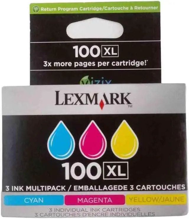 Includes (1) each of high yield cyan, magenta and yellow return program ink cartridges. Each color ink will yield approximately 600 pages. Combo pack contains: (1) Lexmark 100XL High Yield Cyan Ink Cartridge (14N1069) (1) Lexmark 100XL High Yield Magenta Ink Cartridge (14N1070) (1) Lexmark 100XL High Yield Yellow Ink Cartridge (14N1071)