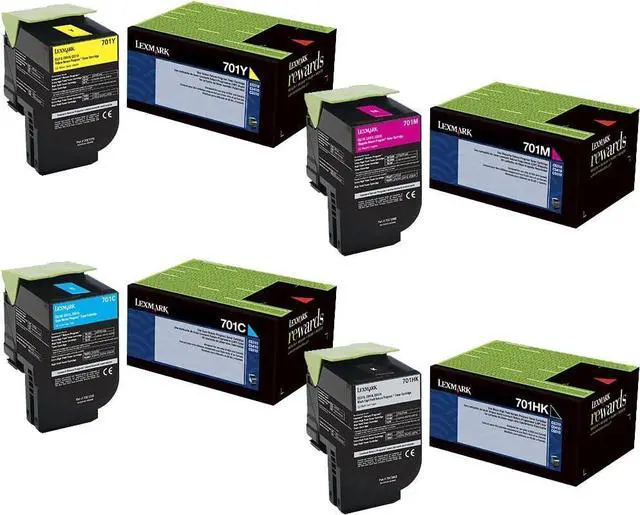 This Lexmark 70C1HK0 High Yield Black with 70C10C0, 70C10M0, 70C10Y0 Standard Yield Color Toner Cartridge Set for Lexmark CS410dn printer contains four color compatible cartridges (Black 70C1HK0, Cyan 70C10C0, Magenta 70C10M0, Yellow 70C10Y0) that has been designed to work with a range of Lexmark printer(s).The Black toner cartridge will approximately yield up to 4,000 pages and each Color cartridge up to 1,000 pages. Manufactured by Lexmark.