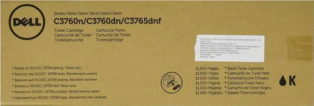 11,000 page Black Toner Cartridge for Dell C3760N/ C3760DN/ C3765DNF Color Laser Printer