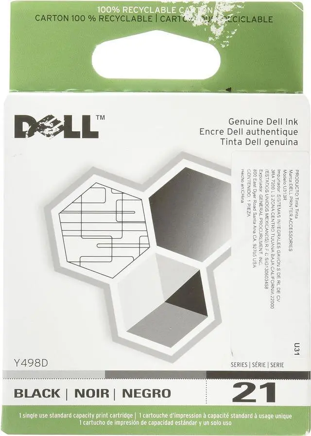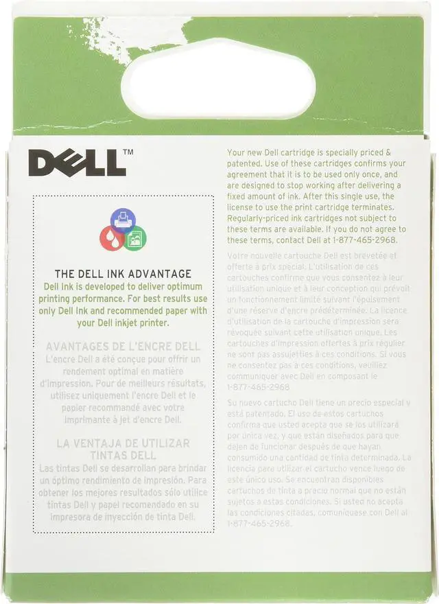 The single use standard yield black cartridge from Dell is specifically designed for Dell wireless all-in-one printer that delivers an optimal level quality and performance. It features microscopic ink-drop size for incredible clarity and detail. Additionally, it produces high-resolution printouts with clear images and sharp text. This cartridge supports Dell ink management system for low ink detection and easy online ordering.