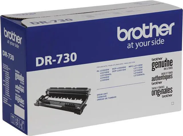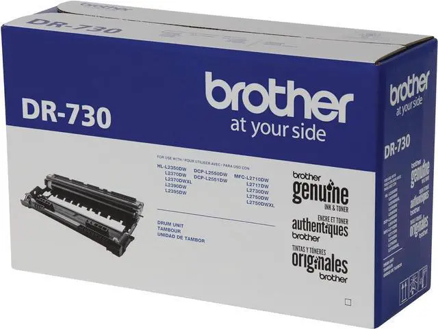 Business professionals who have invested money in high-quality brother products expect the same from replacement supplies. The brother genuine dr-730 black drum unit is a replacement drum for use with 9 different brother printers and all-in-ones, intelligently engineered as part of a complete printing system. These genuine replacement drum units are produced with precision to deliver sharp, text and graphics with every page printed. The dr-730 drum unit yields approximately 12, 000 pages) when used with brother genuine toner cartridges (sold separately). Brother is dedicated to keeping the environment safe and produces our replacement products in iso-certified factories. We offer several environmentally-responsible ways for our customers to dispose of their brother branded products once they have served their purpose. Brother genuine replacement supplies are backed by brother's 'at your side' warranty and customers enjoy lifetime tech support for the life of their printers. The brother dr730 drum unit is for use with dcpl2550dw, hll2350dw, hll2370dw, hll2370dw xl, hll2390dw, hll2395dw, mfcl2710dw, mfcl2750dw, mfcl2750dw xl. (1)Drum yield is approx., And may vary by type of use.