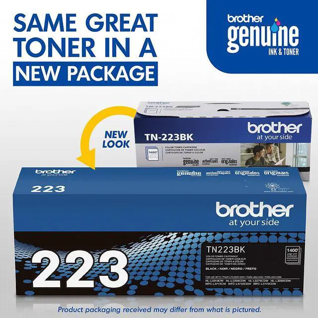 DELIVERS SUPERIOR LASER PRINT QUALITY: Brother Genuine TN-223BK standard yield black toner cartridge delivers consistent crisp, professional laser quality output you can rely on for up to 1,400-pages.(1)