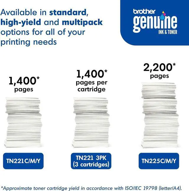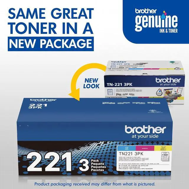 Delivering professional, vivid prints with 1, 400-page Yield, Brother genuine TN221 3Pk standard-yield color Toner Cartridges are intelligently engineered to work seamlessly with Brother printers for consistent results.