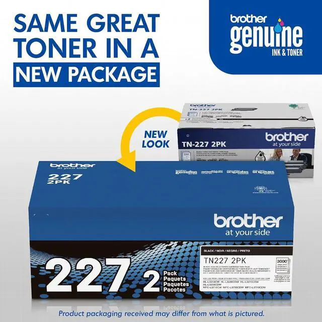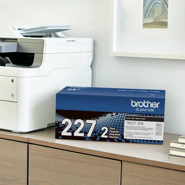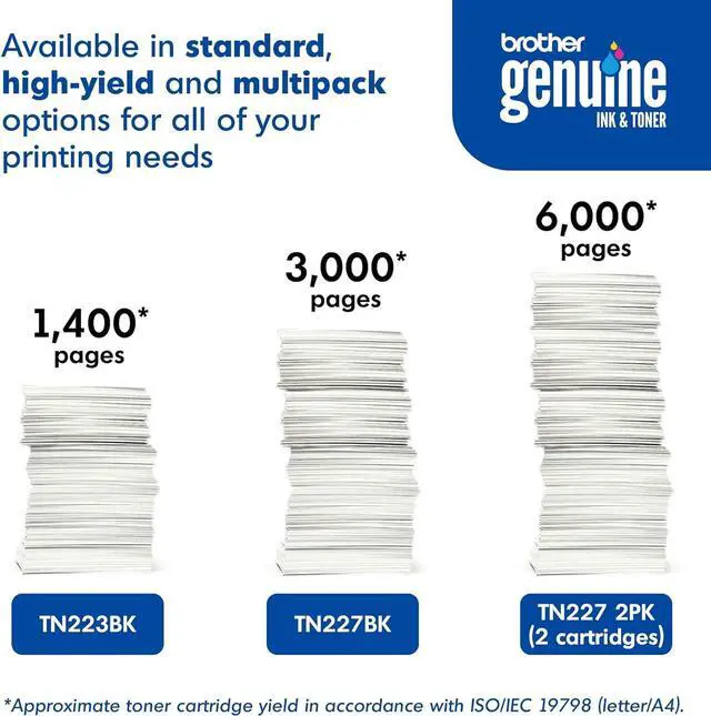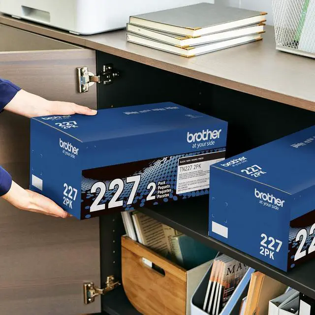 Brother Genuine high-yield Black toner cartridge Twin pack TN227 2pk: contains two TN227 Black laser toner cartridges that deliver Professional laser Print quality for up to 3, 000 pages per cartridge) and up to 6, 000 total pages.(1)