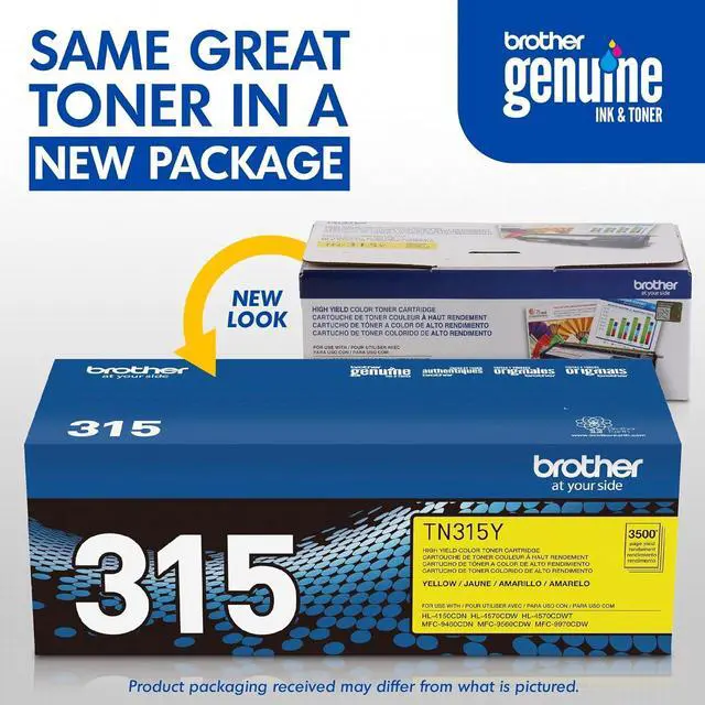 Brother tn315y high yield yellow toner cartridge (yields approx. 3,500 pages in accordance with iso/iec 19798 on letter/a4 size paper)for use with: hl-4150cdn, hl-4570cdw, hl-4570cdwt, mfc-9460cdn what's in the boxone brother tn315y yellow toner cartridge
