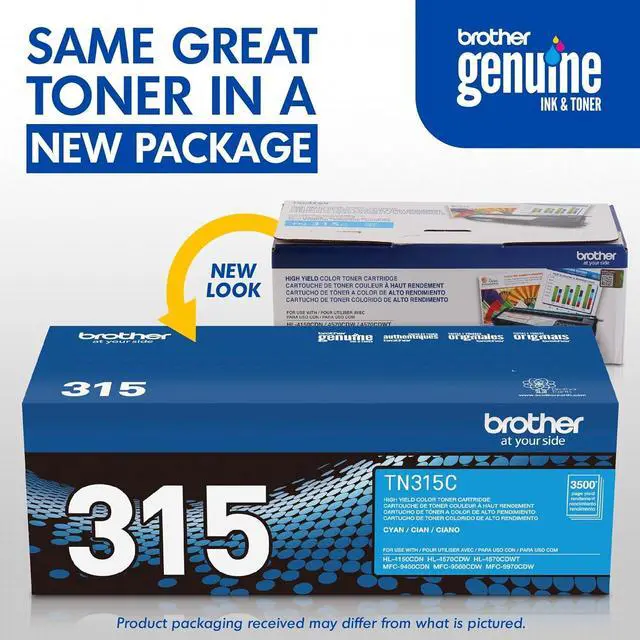The use of Brother Genuine replacement high-yield toner cartridges like the TN-315C produces sharp, color laser pages with the quality you expect from Brother products. The Brother TN-315C replacement cyan toner cartridge is for use with 6 Brother laser printers. This professional cartridge is intelligently engineered to work in seamless unison without compromising the quality of the print.
