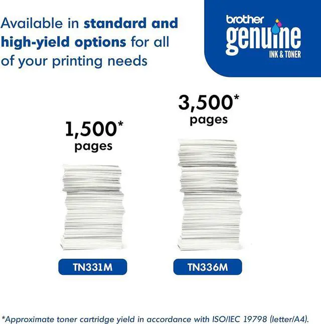 Easy to install design, Genuine toner from Brother produces crisp black prints and rich colors.