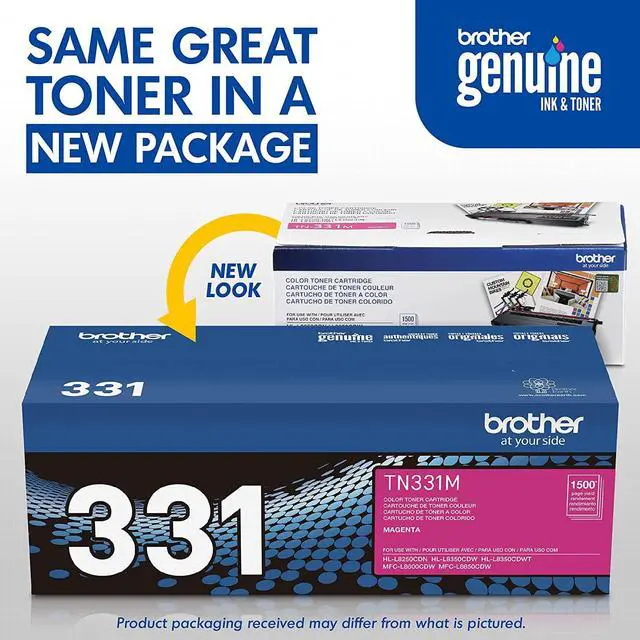 Genuine Brother TN331M Standard Yield Toner Cartridge, Retail Packaging, Magenta