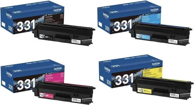 Includes TN331BK, TN331C, TN331M and TN331Y. Black cartridge yields 2500 pages; colors yield 1500 pages. Works with Brother HL-L8250CDN, HL-L8350CDW, HL-L8350CDWT, MFC-L8600CDW, MFC-L8850CDW printers.