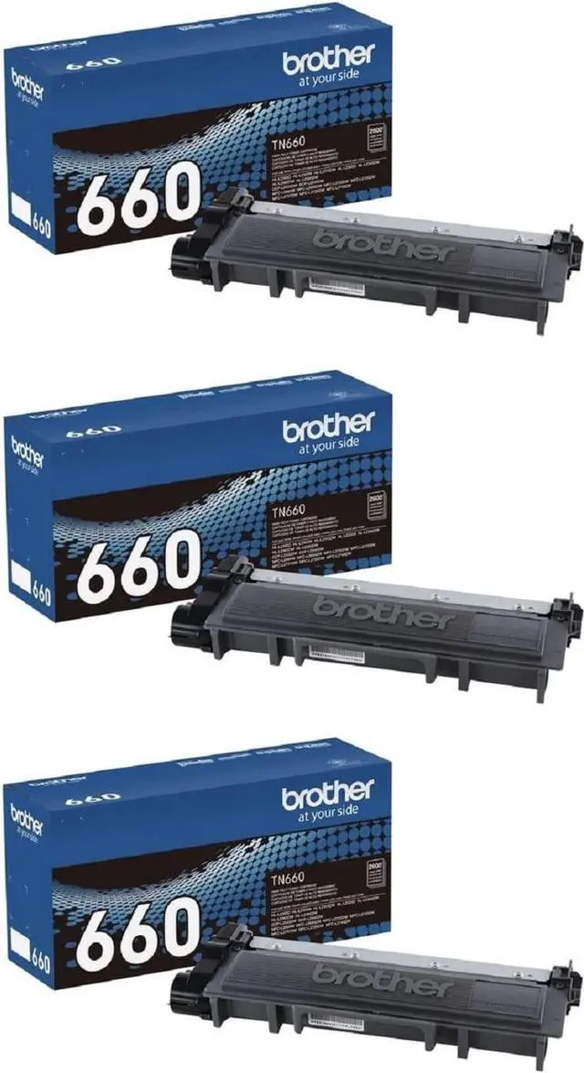 Brother TN660 high yield black toner cartridge works with Brother HL-L2300D, HL-L2320D, HL-L2340DW, HL-L2380DW, DCP-L2520DW, DCP-L2540DW, MFC-L2700DW, MFC-L2720DW, MFC-L2740DW printers. Genuine Brother supplies are designed to achieve optimum performance and superior output.