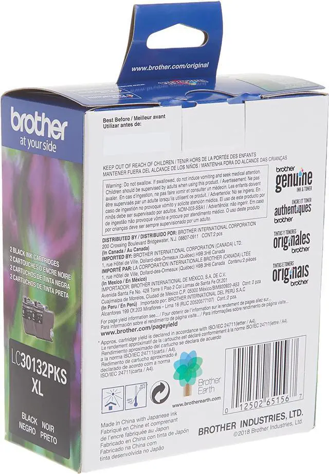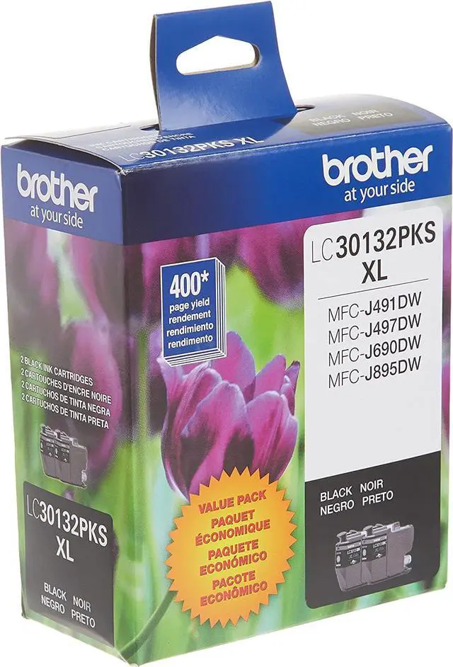 Brother Genuine LC-30132PKS 2-Pack High-yield Black Ink Cartridges deliver consistent, professional print quality with up to 400-page yield/cartridge(1).Brother Genuine ink is intelligently engineered to work seamlessly with your Brother inkjet printer to consistently produce sharp prints that withstand the test of time. Use only Brother Genuine ink cartridges for reliable results. Brother offers an environmentally responsible way for customers to dispose of Brother Genuine cartridges at end of life. Visit manufacturers website for more information. Brother Genuine LC30132PKS is for use with Brother Work Smart Series compact, affordable inkjet all-in-one printers: MFC-J491DW, MFC-J497DW, MFC-J690DW, MFC-J895DW.