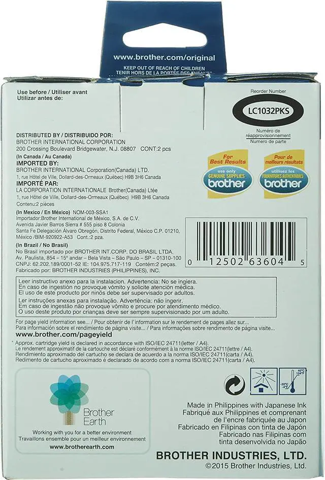 High-yield ink cartridges are designed for use with Brother DCP-J152W, MFC-J245, MFC-J285DW, MFC-450DW, MFC-J470DW, MFC-J650DW, MFC-J870DW, MFC-J875DW, MFC-J4310DW, MFC-J4410DW, MFC-J4510DW, MFC-J4610DW, MFC-J4710DW, MFC-J6520DW, MFC-J6720DW and MFC-J6920DW. Innobella ink technology delivers print longevity, richer colors and sharper images. Each cartridge yields approximately 600 pages.