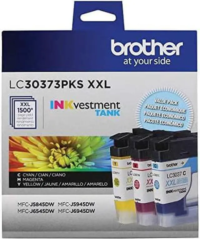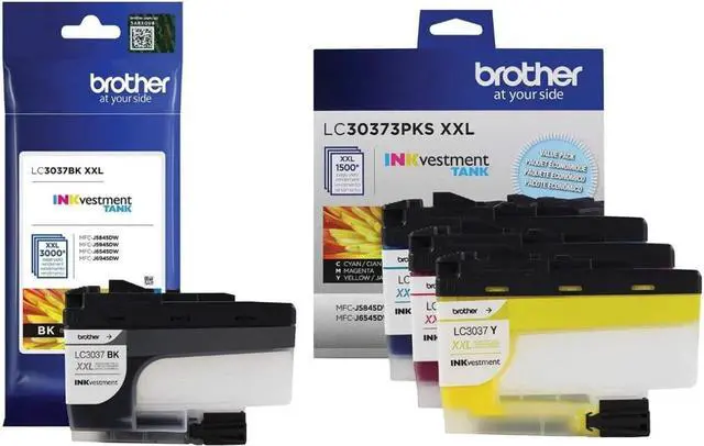 Brother Genuine LC3037 Super High-yield Investment Tank Ink Cartridges deliver consistent, crisp, professional inkjet print quality. Brother Genuine ink is intelligently engineered to work seamlessly with your Brother inkjet printer for optimum results delivering superior high-quality results that withstand the test of time. Brother Genuine ink helps ensure reliable operation and protection of your inkjet printer and its long-life print heads and extensive testing ensures optimum performance. Using non-Brother Genuine inks may result in reduced page yield, inferior image quality and a messy experience. Brother Genuine ink is designed and formulated to work with Brother inkjet printers for optimal results. Use only Brother Genuine ink cartridges for reliable results. Product may not cover damage or malfunction caused by using non-Brother ink cartridges. Brother Genuine ink cartridges come in a variety of page yields to help save money and deliver more pages. Choices for Investment Tank inkjet printer include Super High-yield and Ultra High-yield options. Always check that the ink cartridge is compatible with your Brother inkjet printer model. Brother offers an environmentally responsible way to dispose of Brother Genuine cartridges at end of life. Visit manufacturers website for more information. Use Brother Genuine LC-3039 Ultra High-yield Black Investment Tank Ink Cartridges with Brother Investment Tank printer models: MFCJ5845DW, MFCJ5845DW XL, MFCJ5945DW, MFCJ6545DW, MFCJ6545DW XL and MFCJ6945DW that feature Brother Investment Tank technology providing exceptional features, an internal ink tank for super convenience and large page yields.