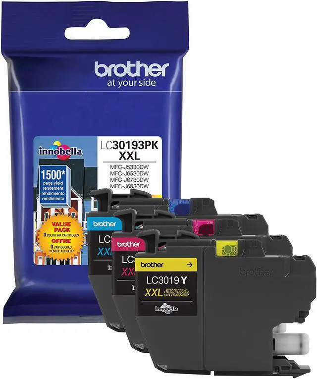 Brother Genuine LC-30193PK includes 1 cartridge each of cyan, magenta and yellow. LC-30193PK provides high-quality, rich, vivid inkjet prints that you can rely on for up to 1500 pages/cartridge.*