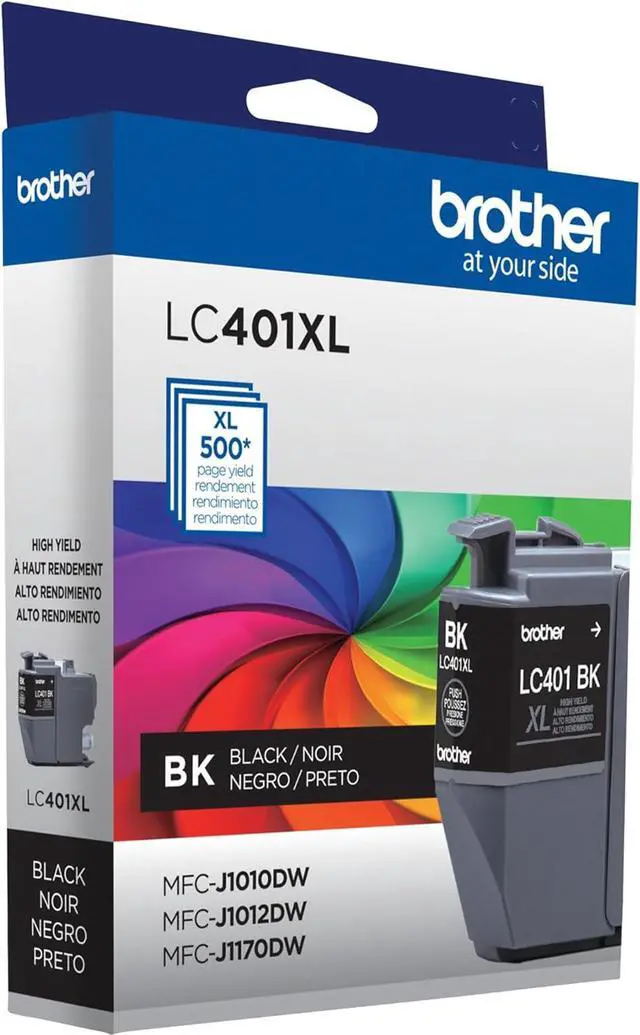 This Brother Genuine LC401XLBKS high-yield black ink cartridge provides high-quality, black prints that you can rely on for up to 500 pages. Intelligently engineered as part of a complete printing system, it works in seamless unison with your Brother inkjet printer to deliver crisp output with consistently superior print quality. Because Brother cares about the environment, we offer an environmentally responsible way for customers to dispose of Brother Genuine cartridges. Visit https://www.brother.ca/en/environment to learn more. Brother LC401XLBKS ink cartridges are for use with the following Brother all-in-one colour inkjet printers: MFC-J1010DW, MFC-J1012DW and MFC-J1170DW.