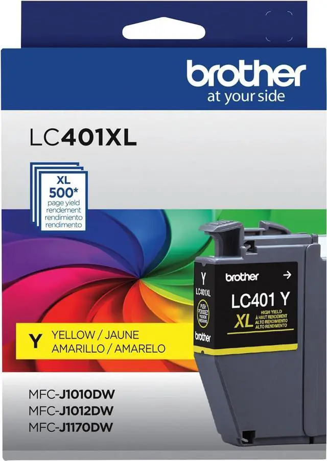 This Brother Genuine LC401XLYS high-yield yellow ink cartridge provides high-quality, colour prints that you can rely on for up to 500 pages. Intelligently engineered as part of a complete printing system, it works in seamless unison with your Brother inkjet printer to deliver rich, vivid colour output with consistently superior print quality. Because Brother cares about the environment, we offer an environmentally responsible way for customers to dispose of Brother Genuine cartridges. Visit https://www.brother.ca/en/environment to learn more. Brother LC401XLYS yellow ink cartridges are for use with the following Brother multifunction colour inkjet printer models MFC-J1010DW, MFC-J1012DW, and MFC-J1170DW.