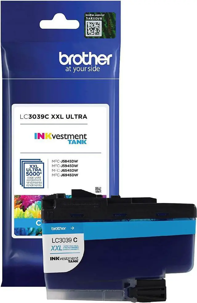 Brother Genuine LC3039C Ultra High-yield Cyan INK vestment Tank Ink Cartridges deliver consistent, rich, vivid professional inkjet print quality with an up to 5, 000-page yield. (1) Brother Genuine ink is intelligently engineered to work with your Brother inkjet printer for optimum results delivering superior high-quality results that withstand the test of time. The LC3039C is also an Dash Replenishment eligible replacement cartridge. Upon Activation, Dash Replenishmenteligible Brother printers will seamlessly order Brother Genuine supplies through your account and ship them directly to your door. Brother Genuine ink helps ensure reliable operation and protection of your inkjet printer and its long-life print heads and extensive testing ensures optimum performance. Using non-Brother Genuine inks may result in reduced page yield, inferior image quality and a messy experience. Brother Genuine ink is designed and formulated to work with Brother inkjet printers for optimal results. Use only Brother Genuine ink for reliable results. Product may not cover damage or malfunction caused by using non-Brother ink cartridges. Brother Genuine ink cartridges come in a variety of page yields to help save money and deliver more pages. Choices for INK vestment Tank inkjet printer include Super High-yield and Ultra High-yield options. Always check compatibility of the ink cartridge with the Brother inkjet printer model. Brother offers an ally responsible way to dispose of Brother Genuine cartridges at end of life. Use Brother Genuine LC-3039C Single Pack Cyan Inkjet Cartridges with Brother INK vestment Tank printer models: MFCJ5845DW, MFCJ5845DW XL, MFCJ5945DW, MFCJ6545DW, MFCJ6545DW XL and MFCJ6945DW that feature Brother INK vestment Tank technology with exceptional features, internal ink tank for super convenience and large page yields. Brother INK vestment Tank models include a two-year limited with support for the life of the printer. (1)Approximate page yield in accordance with ISO/IEC 24711.
