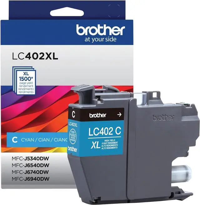 Always trust Brother Genuine ink for superior inkjet print quality and performance you can consistently rely on. Brother Genuine LC402XLCS High Yield Cyan Ink Cartridges deliver ultra-convenient, professional results with an up to 1,500-page yield.¹ LC402XLCS cartridges are for use with the following Brother Colour Inkjet All-In-One printers: MFC-J5340DW, MFC-J6540DW, MFC-J6940DW.
