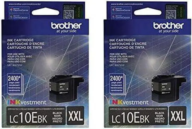 Brother Genuine Super High Yield Black Ink Cartridge 2-Pack, LC10EBK, Replacement Black Ink, Page Yield Up to 2,400 Pages Each, LC10E