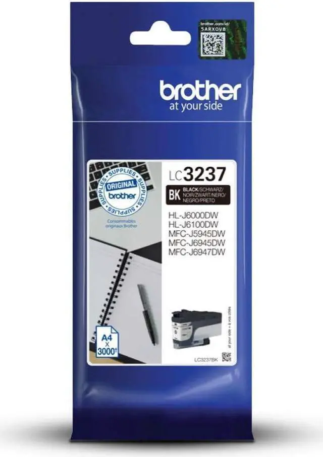 All Brother cartridges are rigorously tested to ensure they provide customers with the most consistently reliable solution possible. Though cheap, non-branded refill cartridges are widely available, theyre simply not as compatible with the Brother printer. This can lead to issues with both printout quality and the machines performance and these problems can sometimes prove costly to put right. This genuine replacement Ink Cartridge ensures the printer continues to run glitch-free, providing you with better value in the long-term plus the peace of mind that comes from knowing you have a printing setup you can depend on. Brother consider the environmental impact at every stage of the ink cartridge life cycle, reducing waste at landfill. All our hardware and ink cartridges are built to have as little impact on the environment as possible. Genuine Brother LC3237 ink cartridges - worth it every time Suitable with Brother printers HLJ6000DW, HLJ6100DW, MFCJ5945DW, MFCJ6945DW, MFCJ6947DW