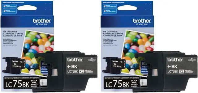 Brother LC752PKS OEM Ink - MFCJ280W J425W J430W J435W J625DW J825DW J835DW J5910DW J6510DW J6710DW J6910DW High Yield Black Ink Twin Pack (2 Pack of OEM# LC75BK) (2 x 600 Yield) OEM