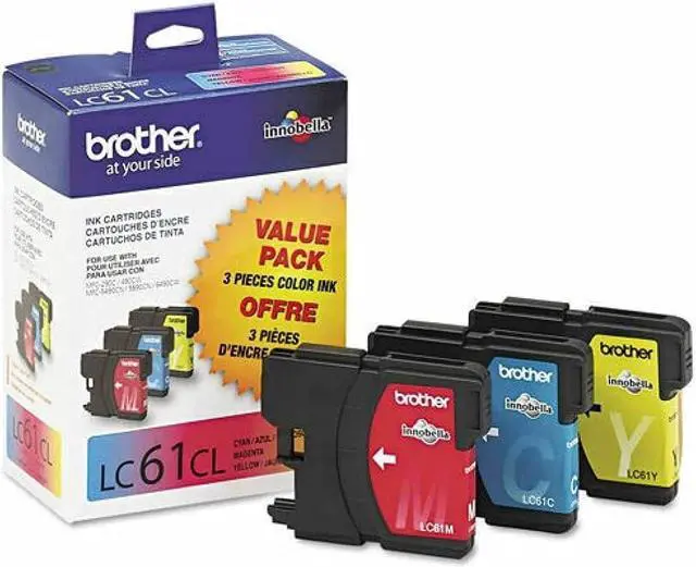 Brother LC61 Ink Cartridges (Cyan, Magenta, Yellow, 3-Pack) in Retail Packaging