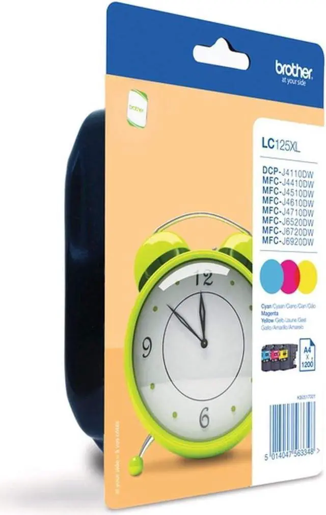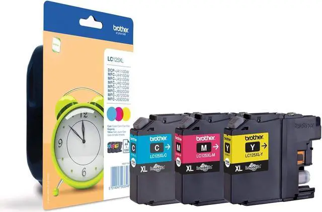 The 3 color Brother LC-125XLRBWBP Cyan, Magenta, Yellow Ink Cartridge can make sure output is of high quality and the printer will be running at optimum efficiency. Each cartridge within the 3 color LC125 XL Brother ink multi-pack can print up to 1,200 pages in bright, vivid colors.