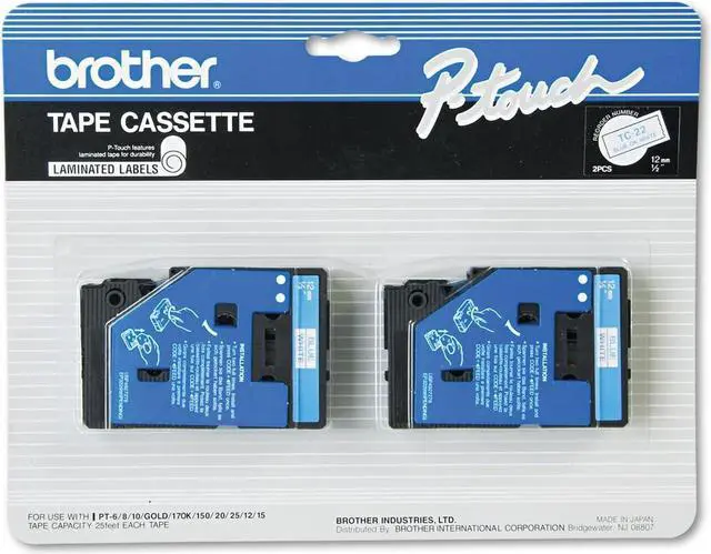 Brother TC22 TC Tape Cartridges for P-Touch Labelers, 1/2w, Blue on White, 2/Pack