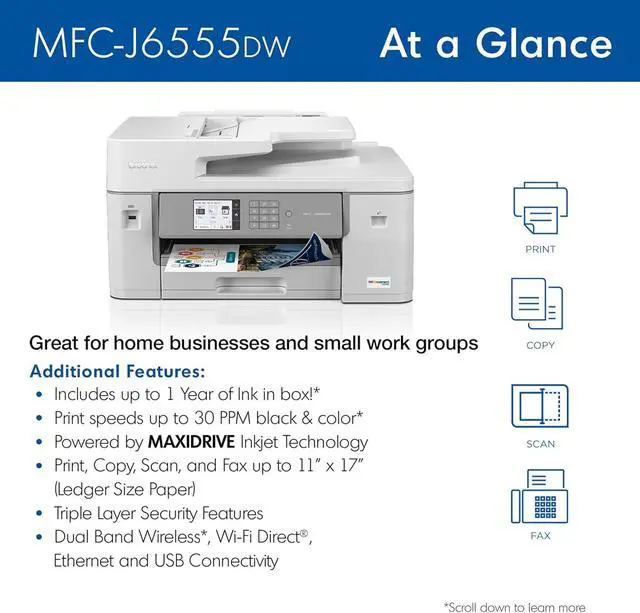 BROTHER MAXIDRIVE INKJET TECHNOLOGY Our fastest, most durable INKvestment Tank print engine delivers high-volume performance.