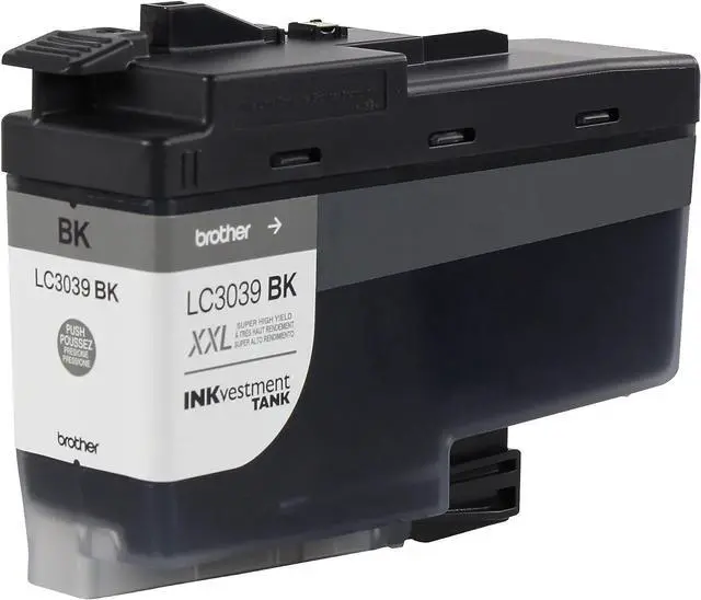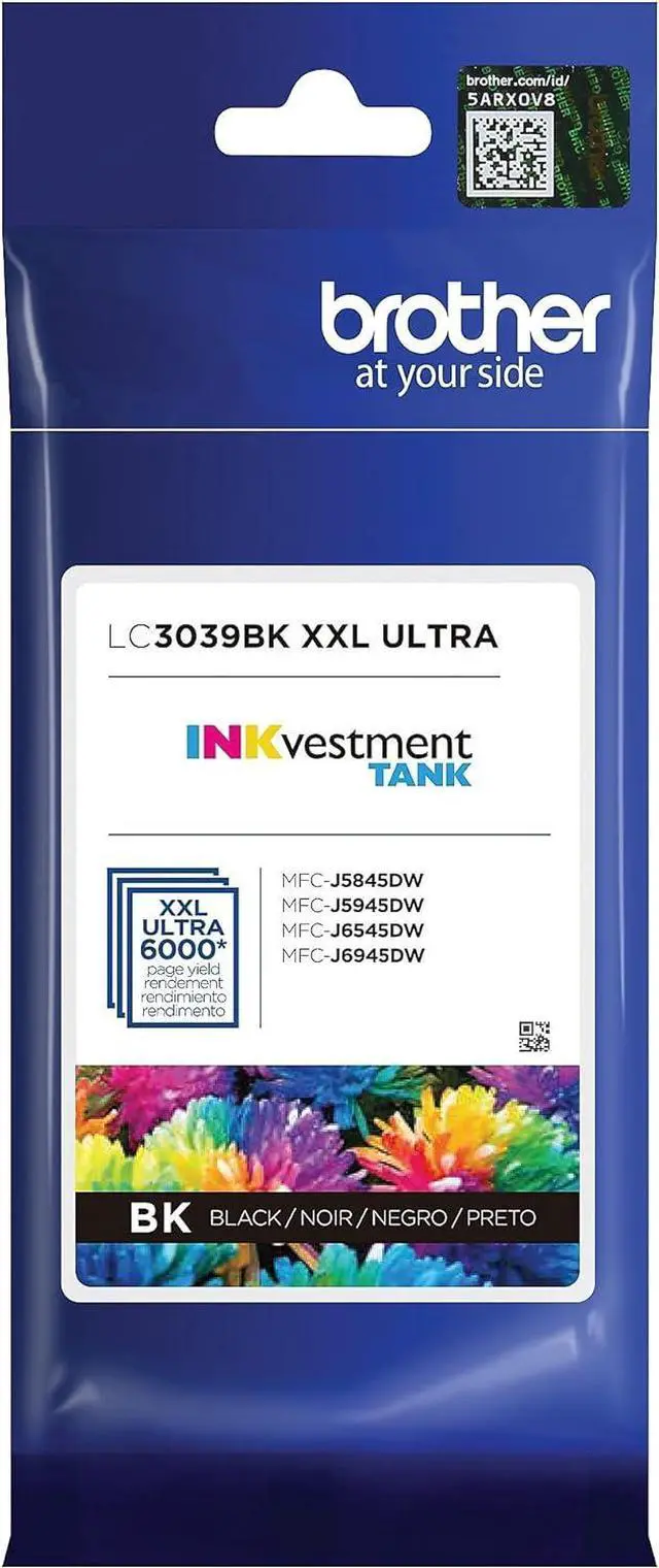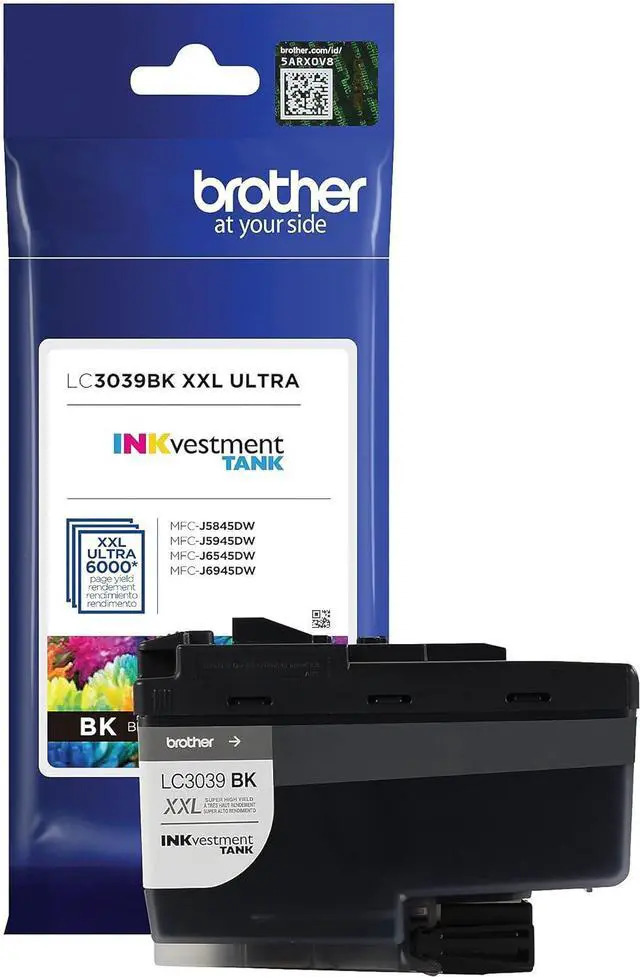 This Brother Genuine LC3039BKS ultra high-yield black ink cartridge provides high-quality, black prints that you can rely on for up to 6,000 pages. Intelligently engineered as part of a complete printing system, it works in seamless unison with your Brother inkjet printer to deliver crisp output with consistently superior print quality. Because Brother cares about the environment, we offer an environmentally responsible way for customers to dispose of Brother Genuine cartridges. Visit www.brother-usa.com/Environment to learn more. Brother LC3039BKS ink cartridges are for use with the following Brother INKvestment Tank inkjet all-in-one printers MFC-J5845DW, MFC-J5845DW XL, MFC-J5945DW, MFC-J6545DW, MFC-J6545DW XL and MFC-J6945DW that feature Brother tank technology.
