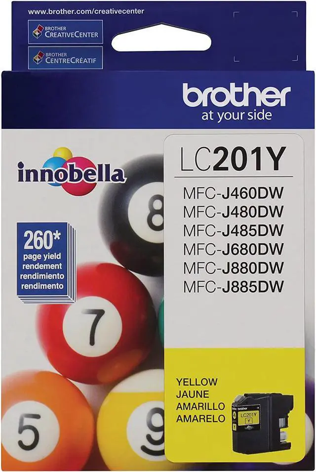 Brother genuine cartridge - LC2013PKS is a 3-pack of color ink cartridges (Cyan, Magenta & Yellow) and LC201Y is a standard yield yellow ink cartridge, yielding up to 260 pages per cartridge