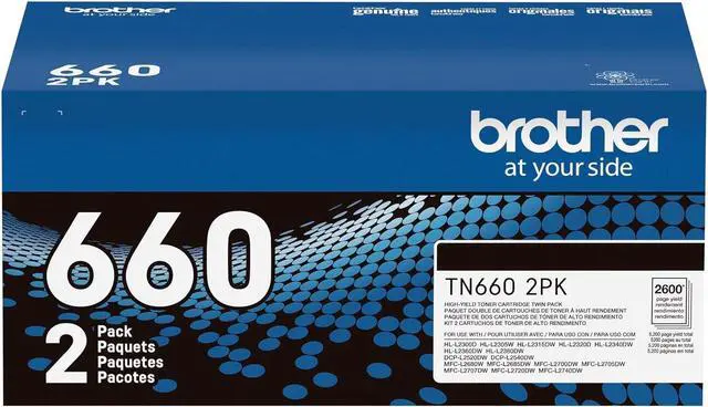 Brother Genuine high-yield Black toner cartridge Twin pack TN660 2pk is for use with: DCP-L2520DW, DCP-L2540DW, HL-L2300D, HL-L2305W, HL-L2315DW, HL-L2320D, HL-L2340DW, HL-L2360DW, HL-L2380DW, MFC-L2680W, MFC-L2685DW, MFC-L2700DW, MFC-L2705DW ¦