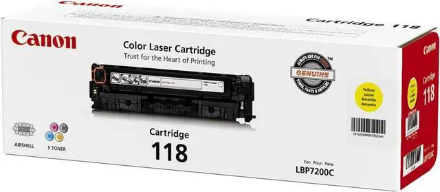 Canon CA Genuine Canon imageCLASS Toner 118 Yellow Made for Each Other Why Are Canon Genuine Supplies Recommended? Key Features All-in-One Cartridge System Spherical and Synergy Toner (S Toner) for Colour Printers Genuine Canon Hologram Genuine Toner Recycle Program