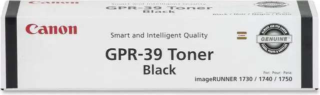 GPR-39 toner cartridge produces rich, clear, vivid images with a smooth, high-quality finish. It is designed for use in Canon image Runner 1730, 1730iF, 1740, 1740iF, 1750 and 1750iF. Cartridge yields approximately 15,100 pages.