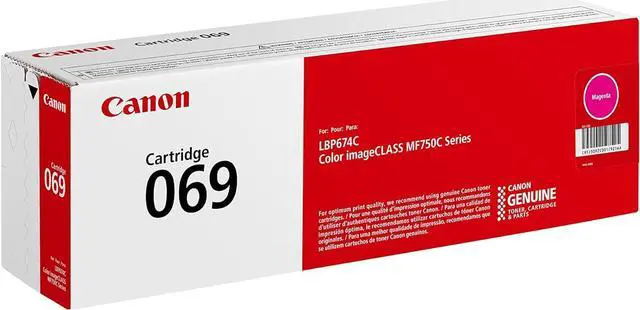 Canon Genuine Toner 069 / 069 H works with LBP674Cdw, MF753Cdw and MF751Cdw laser printers. Toner 069 CMY yields up to 1,900 pages, Black yields up to 2,100 pages, and 069 High Capacity CMY yields up to 5,500 pages, Black yields up to 7,600 pages (ISO / IEC Standard).