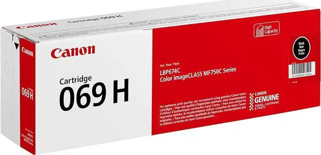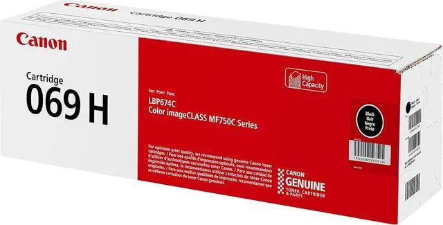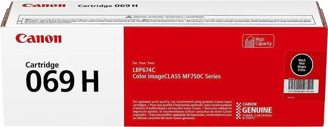 Canon Genuine Toner 069 / 069 H works with LBP674Cdw, MF753Cdw and MF751Cdw laser printers. Toner 069 CMY yields up to 1,900 pages, Black yields up to 2,100 pages, and 069 High Capacity CMY yields up to 5,500 pages, Black yields up to 7,600 pages (ISO / IEC Standard).
