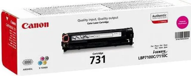 Canon 731. Nombre de pages imprimées: 1500 pages, Technologie d'impression: Laser, Produits compatibles: i-SENSYS LBP7100CN/7110CW La cartouche 731 M permet d'imprimer environ 1500 pages (selon la norme ISO 19798).