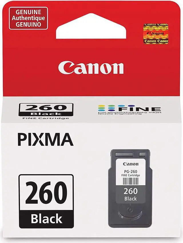 Genuine Canon pg-260 black ink cartridge For sharp black text: the pg-260 black ink cartridge produces crisp, sharp black text for all your documents.Combined with the genuine cl-261 color ink cartridge and Canon photo paper this ink protects your photos from fading for longer, thanks to the ChromaLife100 system. Genuine Canon inks provide peak performance that is specifically designed for compatible Canon printers.