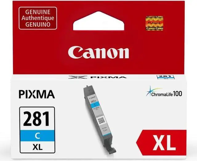 Genuine Canon CLI-281 Cyan inks produce crisp, smudge-resistant text for professional quality documents. Canon's proprietary FINE (Full Photolithographic Inkjet Nozzle Engineering) technology delivers exceptional sharpness and detail. When printing with genuine Canon inks and photo papers the ChromaLife100 system produces beautiful, long-lasting photos. Plus, these individual ink tanks can help reduce waste and save you money by only replacing the colour that runs out.
