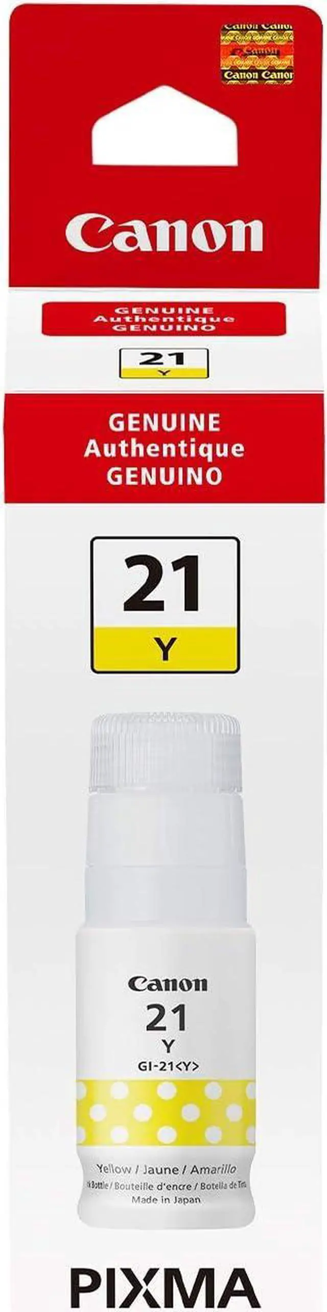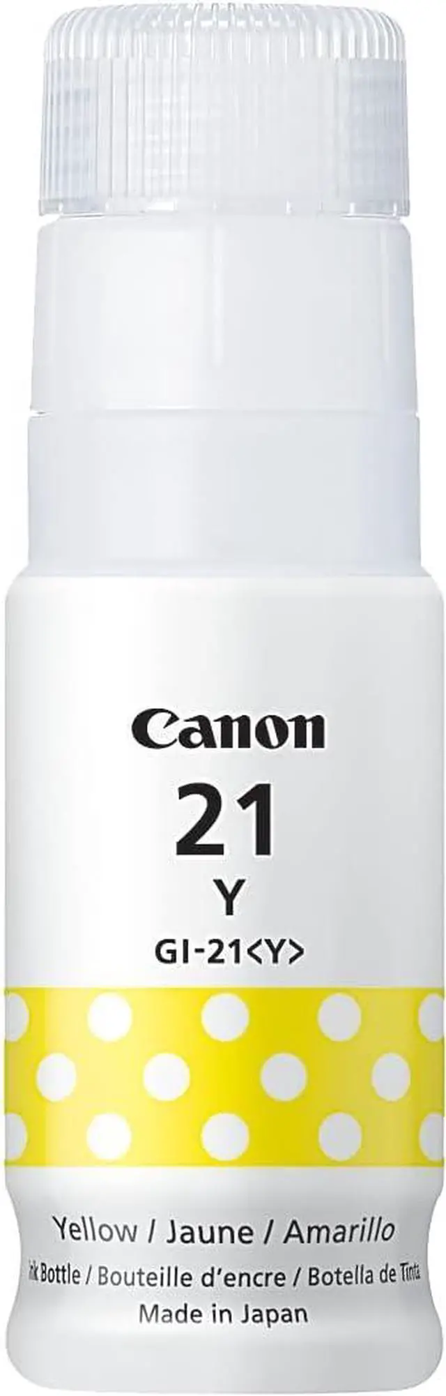 Fill up your PIXMA G1220, G2260, or G3260 MegaTank Printer with this 70mL GI-21 Yellow Ink Bottle from Canon. The bottle is rated to produce approximately 7700 prints, and it features a specialized design to easily fit and fill compatible MegaTank printers.