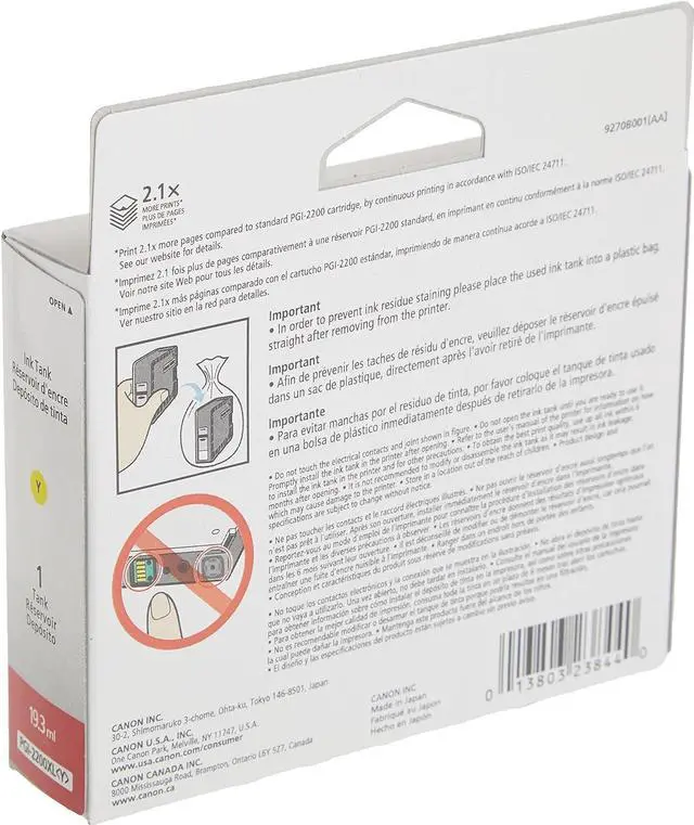 Canon CA PGI-2200 Yellow Ink Cartridge Compatibility Advantages High density Friction resistant Marker resistant