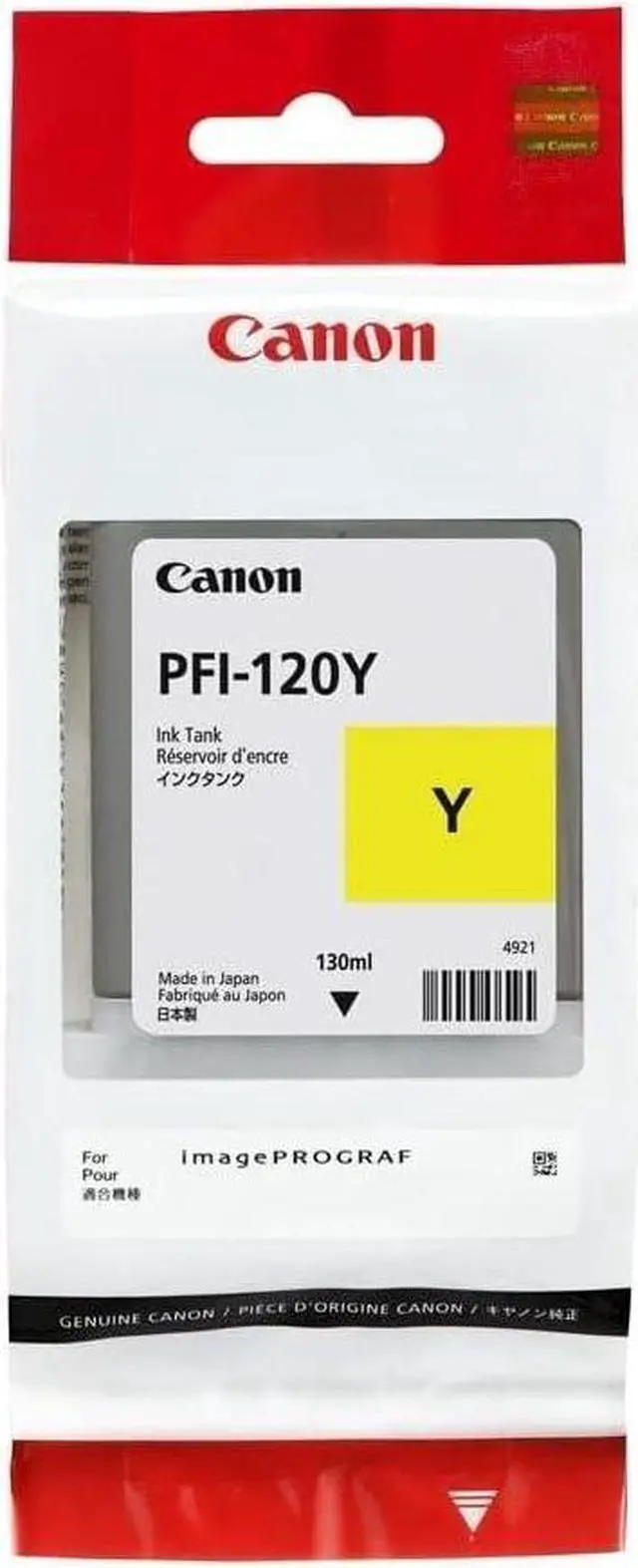 Canon Genuine PFI-120Y printing supplies offer great print quality and reliable performance for fast, professional quality color printing. The PFI-120Y brings new ink formulation, cartridge architecture, and smart printing features to Canon's precision printing system. Easy to install and replace, Genuine Canon PFI-120Y supplies ensure output consistency over the life of the cartridge and make supplies easy to maintain by providing status monitoring and proactive alerts when replacement is needed. Designed together with your Canon printer, PFI-120Y supplies ensure crisp, sharp, vibrant results every time.